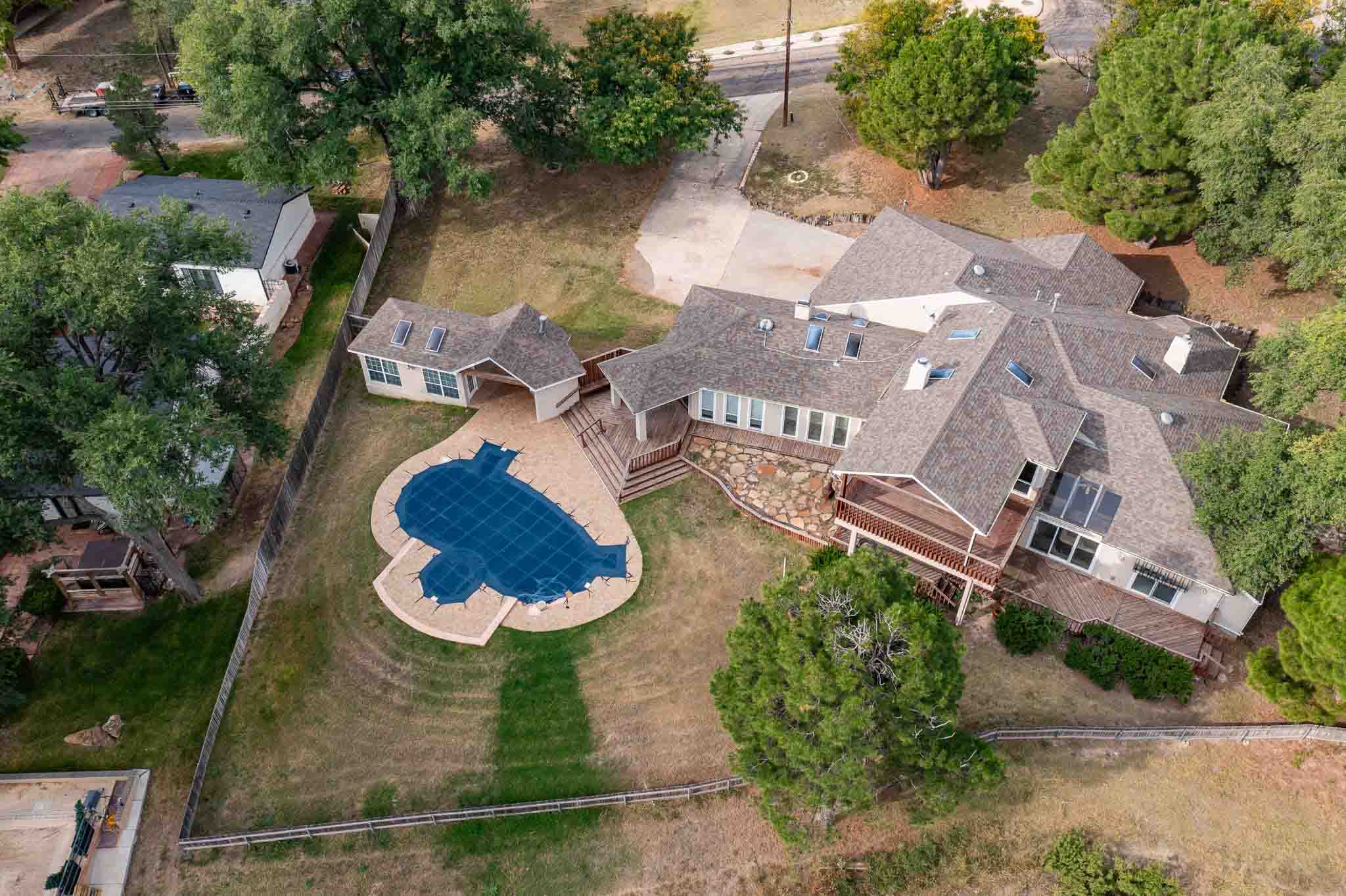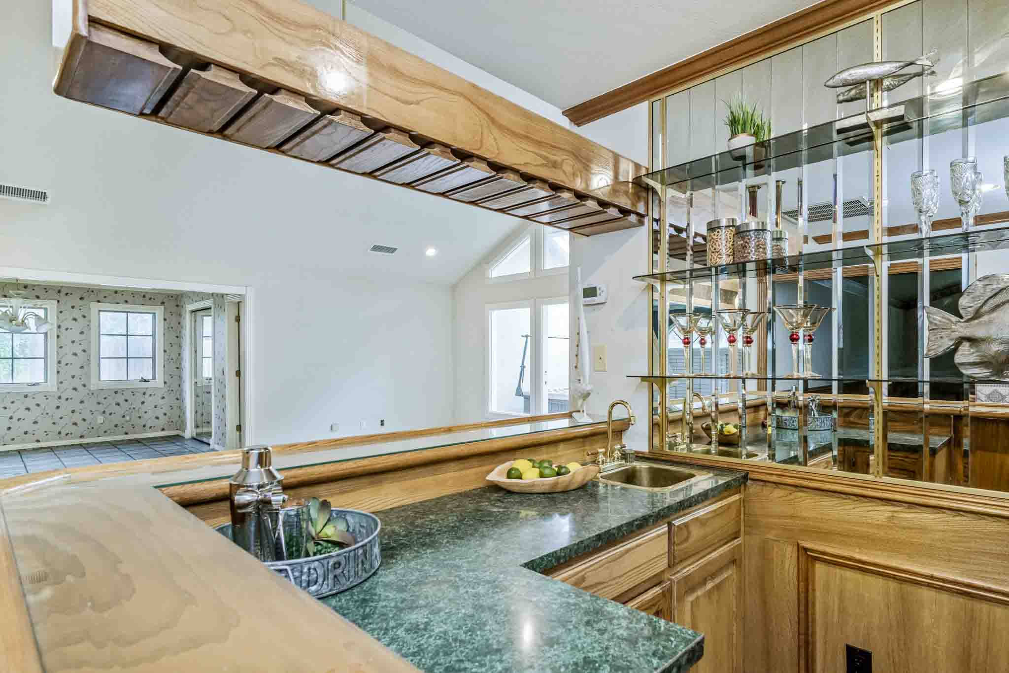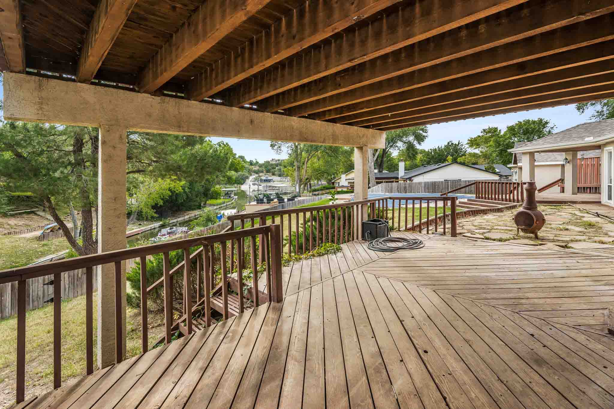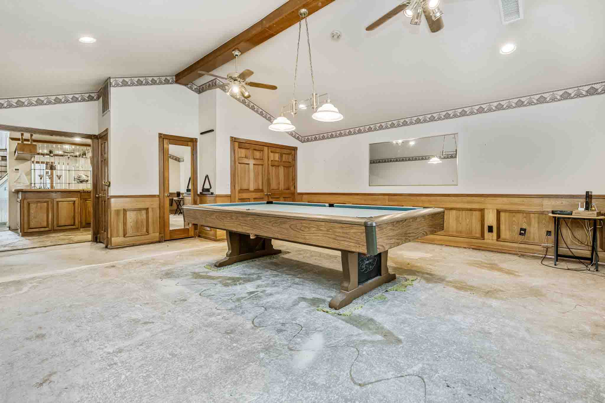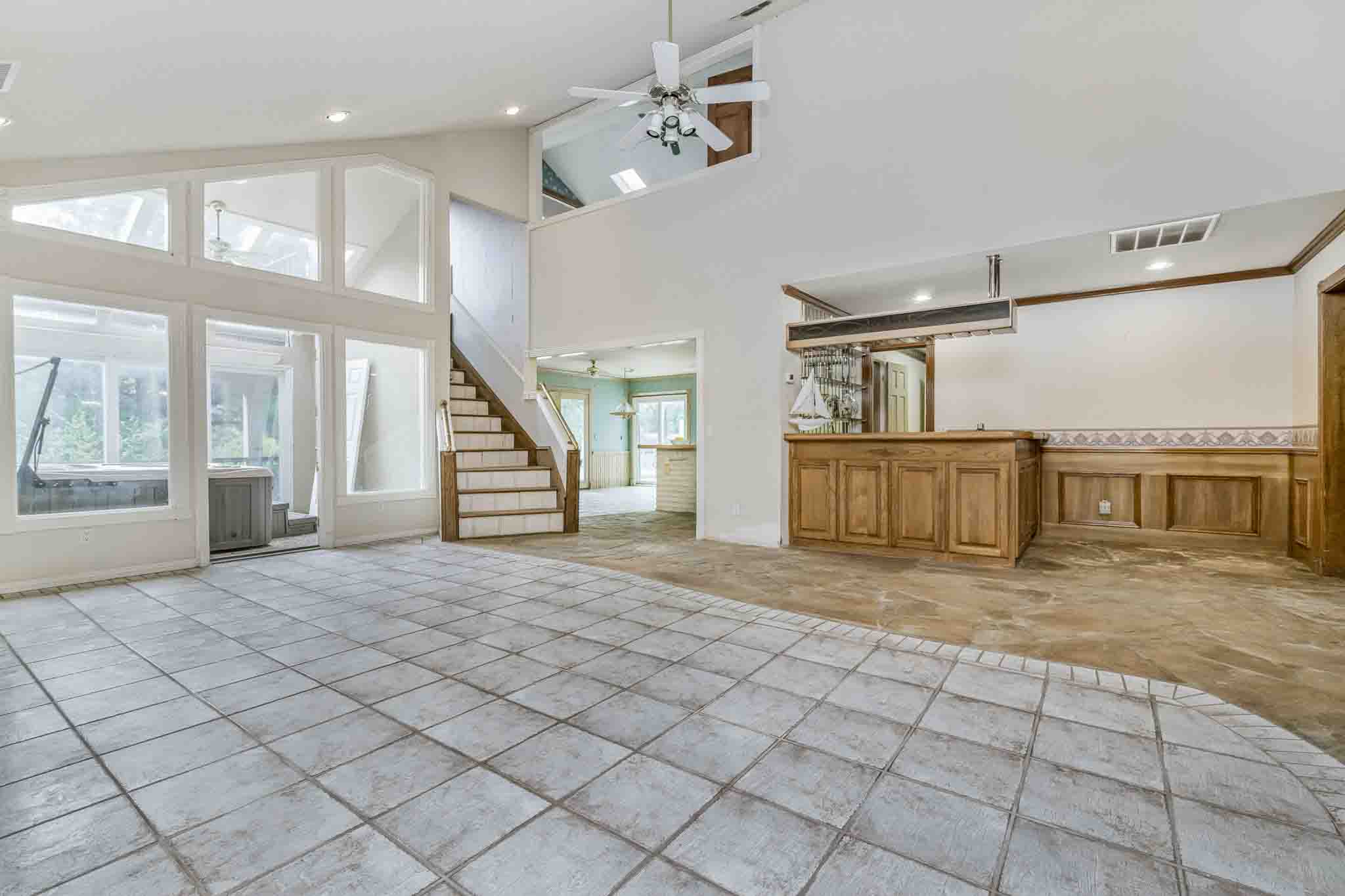 Imagine the possibilities at Lake Tanglewood with this 3-bedroom, 3-bathroom home on a large corner lot surrounded by mature trees in a peaceful cove. The home features a bar area off the living room, a hot tub room, and a spacious additional room with endless potential, perfect for a home office, media room, game room, or anything your vision inspires. The master suite is a true retreat, thoughtfully isolated and filled with natural light from large windows overlooking the lake. The master bathroom offers his-and-hers vanities, and the oversized closet connects directly to the laundry room for ultimate convenience. One of the other bedrooms includes an ensuite bathroom, while the third bedroom has easy access to a full bathroom. Outside, enjoy the pool and poolside room with its own bathroom, ideal for entertaining or relaxing. Being sold as-is, this home is full of potential and ready for someone with vision to transform it into a stunning lakefront retreat. With ample space inside and out, this property is a blank canvas for your dream lakefront lifestyle.