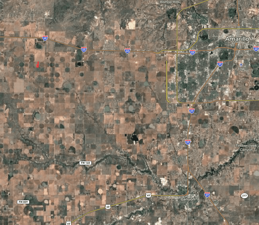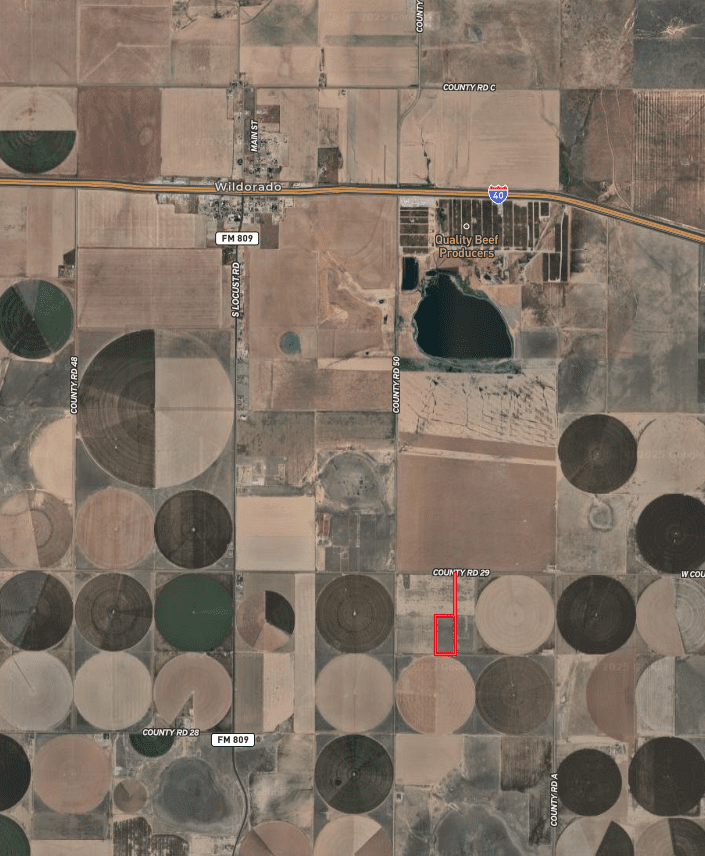 This 19.94-acre tract is located just south of Wildorado offers a great opportunity for agricultural use, investment, or future development. The land is currently unimproved. Surrounding well logs range from 320–400 feet in depth, and irrigation on three sides of the property suggests good water. The soils consist of Pantex silty clay loam with gentle 0–1% slopes, well-suited for farming, grazing or building.