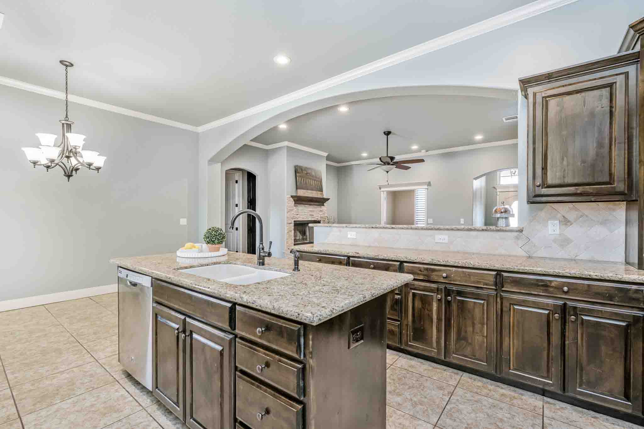 Welcome to this beautiful home in Canyon East. The entry leads into a bright, open living area that connects seamlessly to the kitchen and dining space, creating an inviting setting for everyday life and easy entertaining. Just off the main living area, a dedicated office provides the perfect spot for working from home or managing household tasks. The isolated master suite offers a quiet retreat with a spacious walk-in closet and a comfortable private bathroom. Two guest bedrooms sit on the opposite side of the home, each with easy access to the centrally located second bathroom. Outside, an extended driveway provides ample parking and leads to the convenient side-entry garage. The oversized back patio—with automatic shades—adds even more usable space for relaxing or hosting guests. Thoughtfully arranged and full of practical features, this home delivers comfort, function, and a welcoming feel throughout.