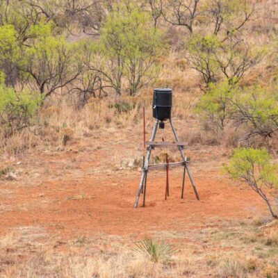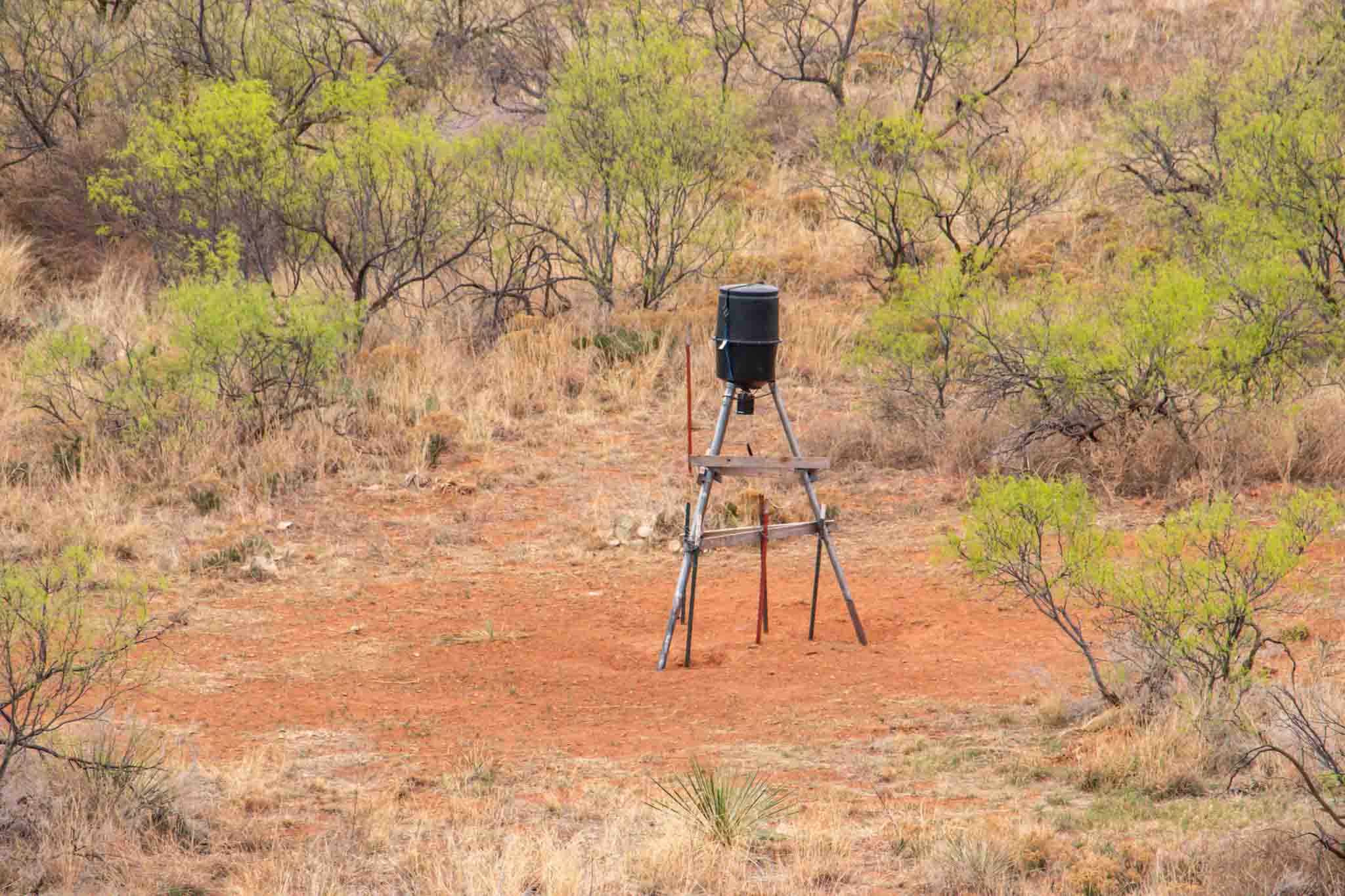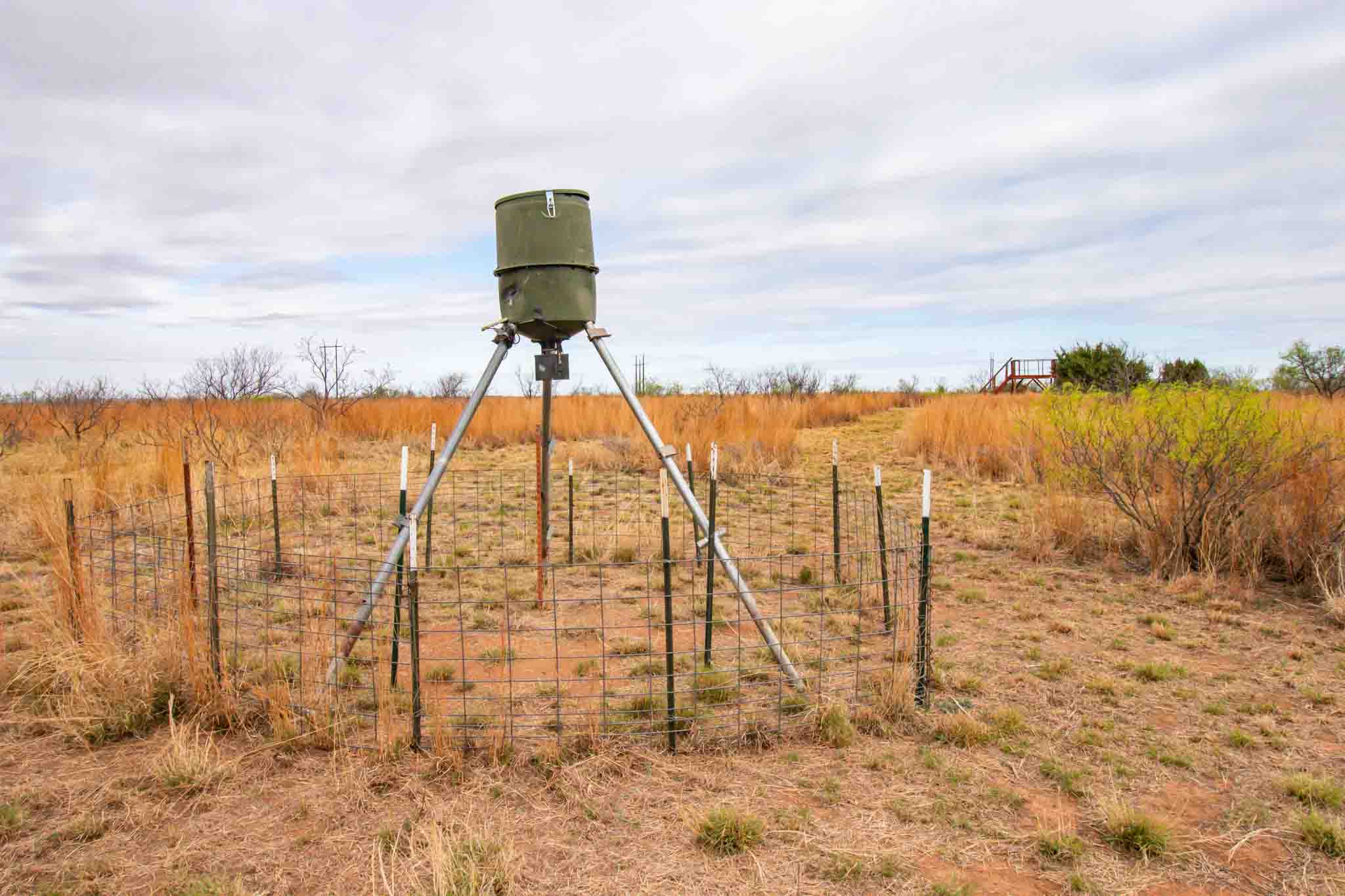 With approximately 120 feet of contour change, the land offers rolling terrain, scenic views, and excellent wildlife habitat. Hunting is outstanding with white-tailed deer, mule deer, hogs, bobwhite quail, and turkey present. Two standing feeders and one drag feeder will convey, making it ready for hunting season.