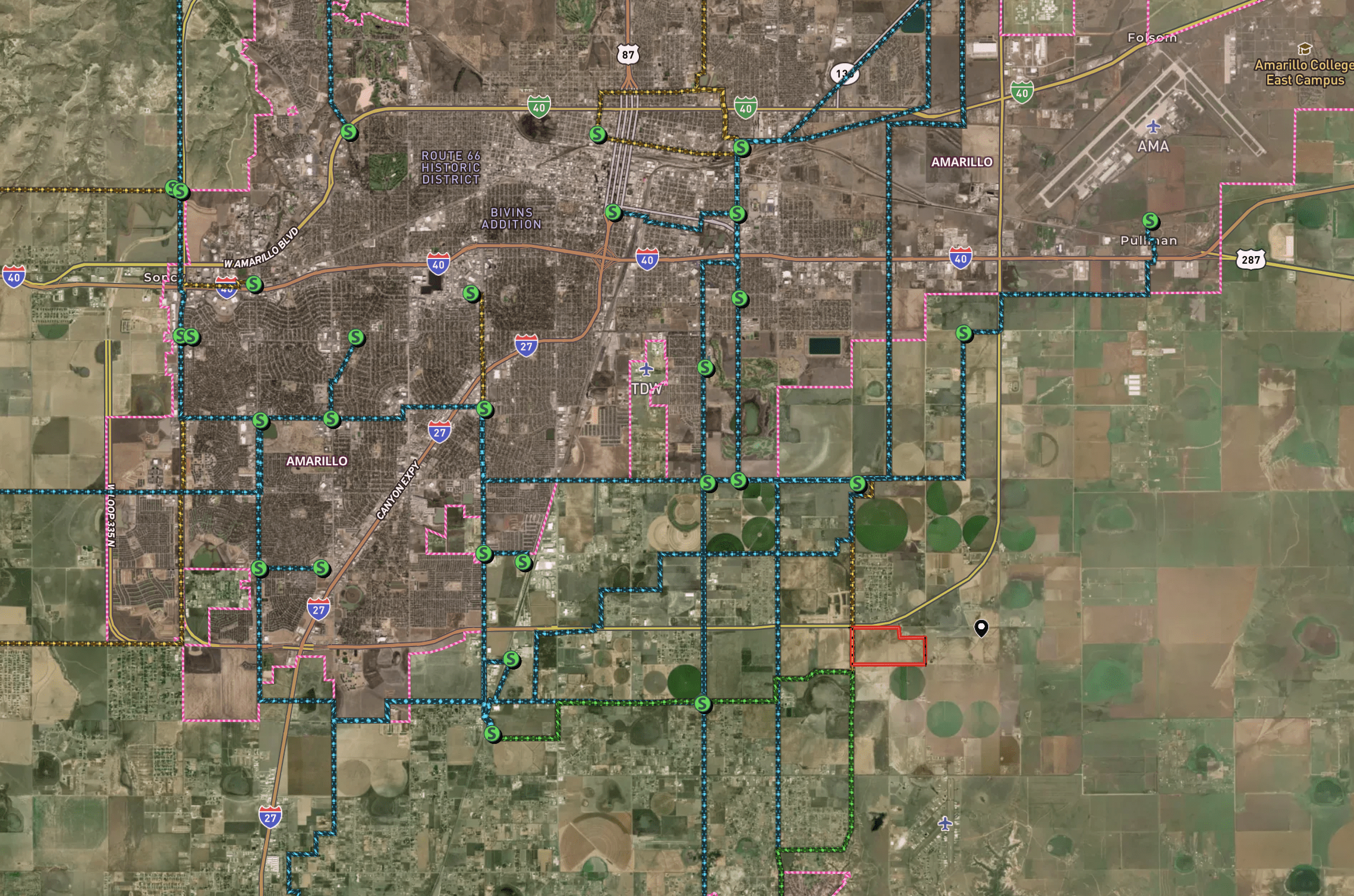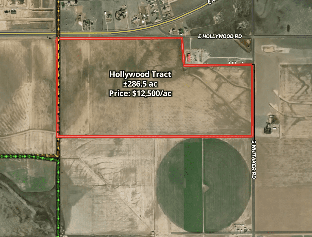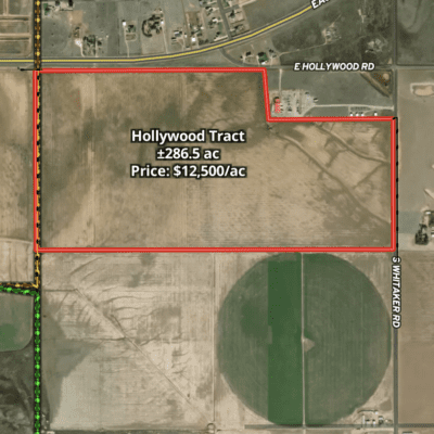 The Hollywood Tract is a ±287-acre parcel ideally positioned in Randall County with direct loop access. The property is directly across from Lonesome Dove Estates and 1.5 miles north of the River Falls area. The property features half a mile of Loop 335 frontage and over 1900 feet of frontage along paved S. Whitaker Rd., providing excellent access and visibility. Located outside Amarillo city limits but within the city’s ETJ, it offers flexibility while remaining close to Amarillo’s conveniences. The land is predominantly level with roughly 10 feet of elevation change across the property, making it well-suited for a variety of uses. Area well logs indicate strong water availability, adding to the property’s overall appeal. This property holds great potential for further development opportunities.
