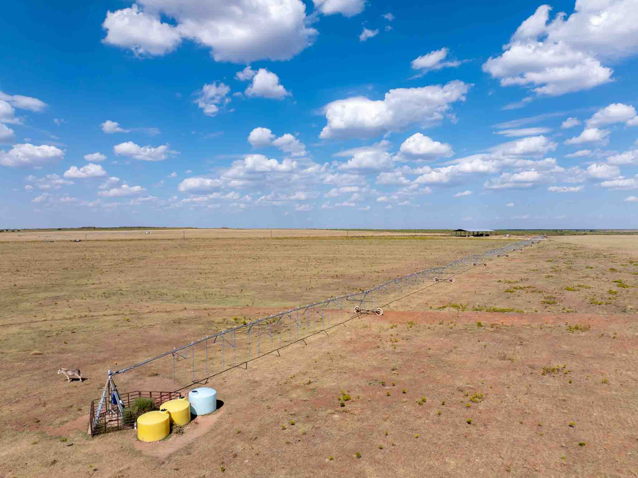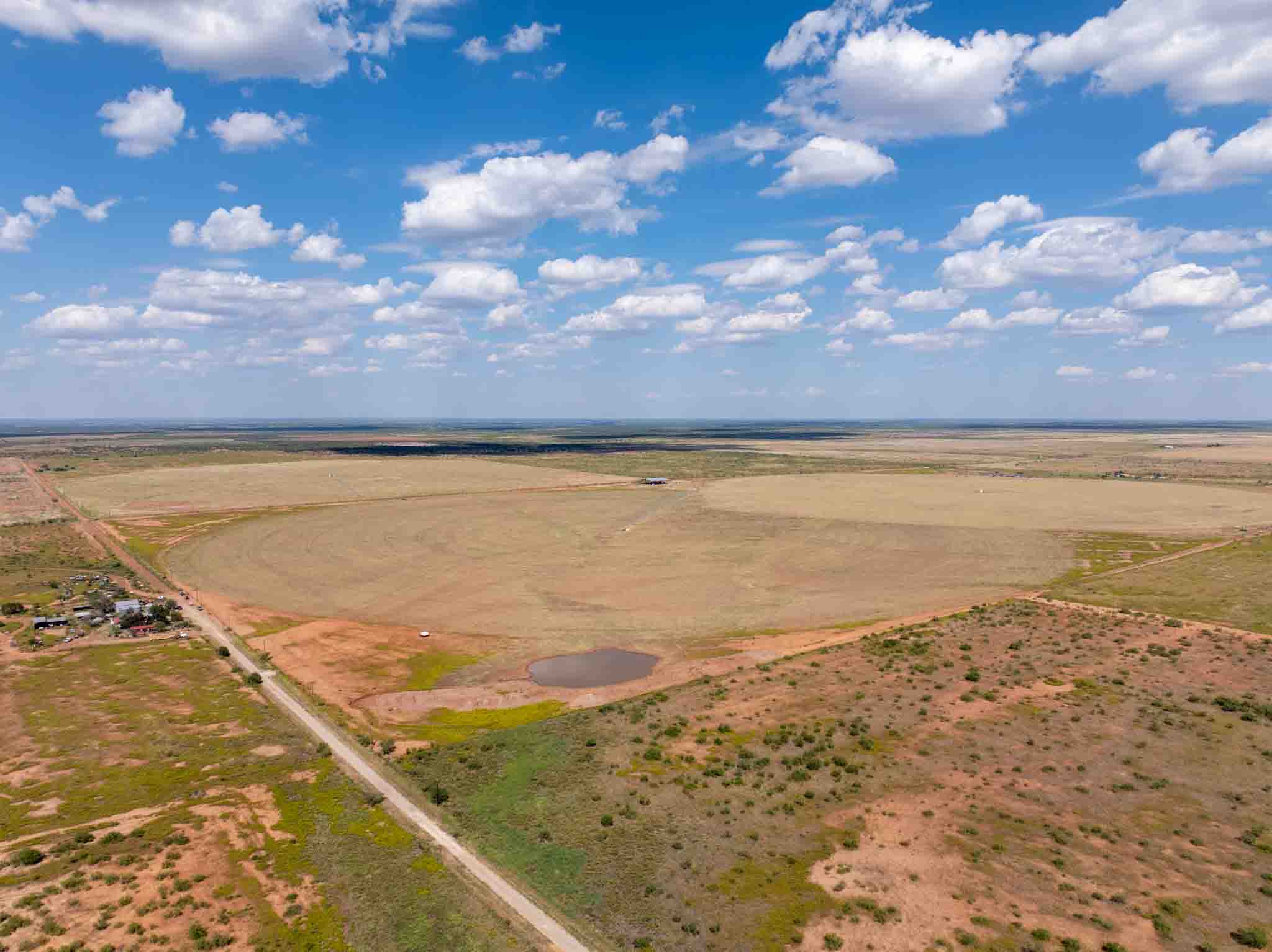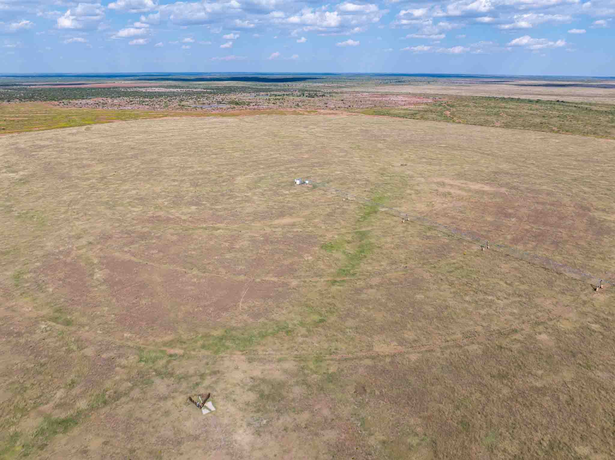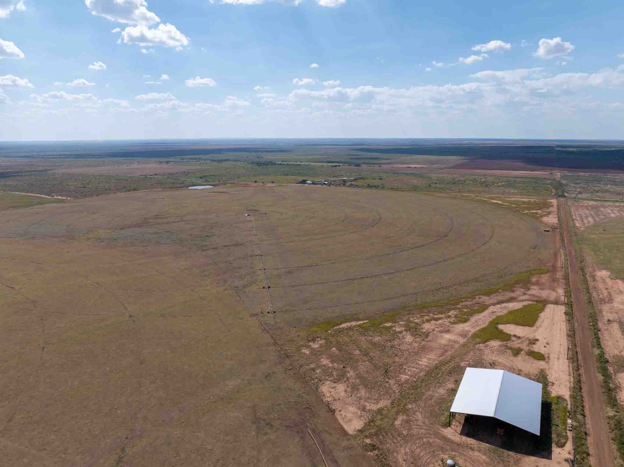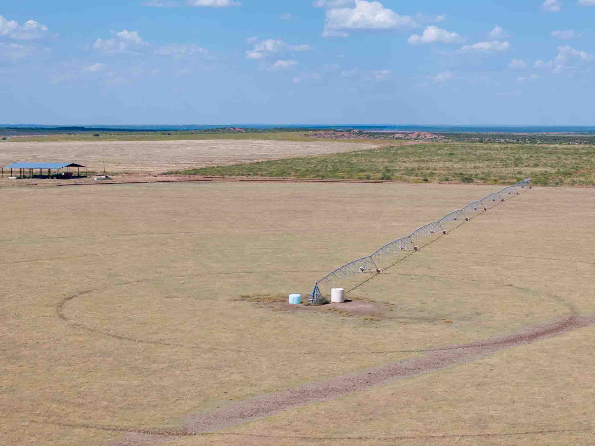 Located just 10 miles northeast of Paducah, Texas, this 540± acre irrigated grass farm combines strong water resources, quality improvements, and exceptional access. The property features three center pivots supported by six wells (1,650 GPM in total / 4.5 GPM per wet acre), delivering a reliable water supply for approximately 350 acres under irrigation. There are an additional 4 irrigation wells that are in working condition for expansion potential, making 10 wells in total. Currently planted in bermuda grass, the farm is well-suited for hay production, grazing, or diversified agricultural use. All the stock tanks are tied into a rural water line that runs across the property.