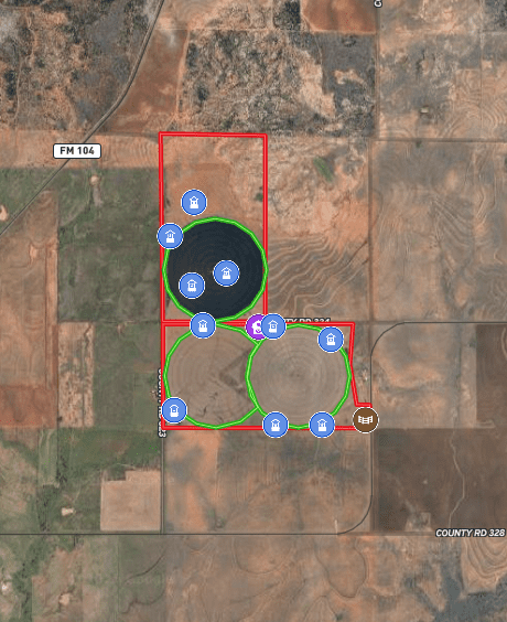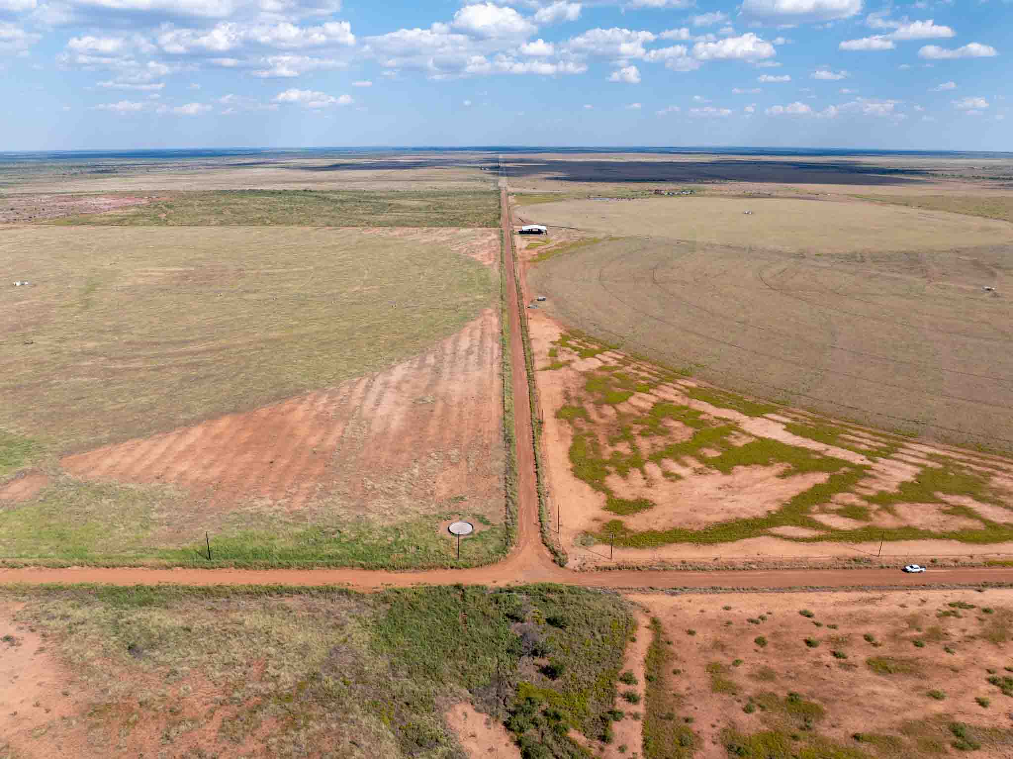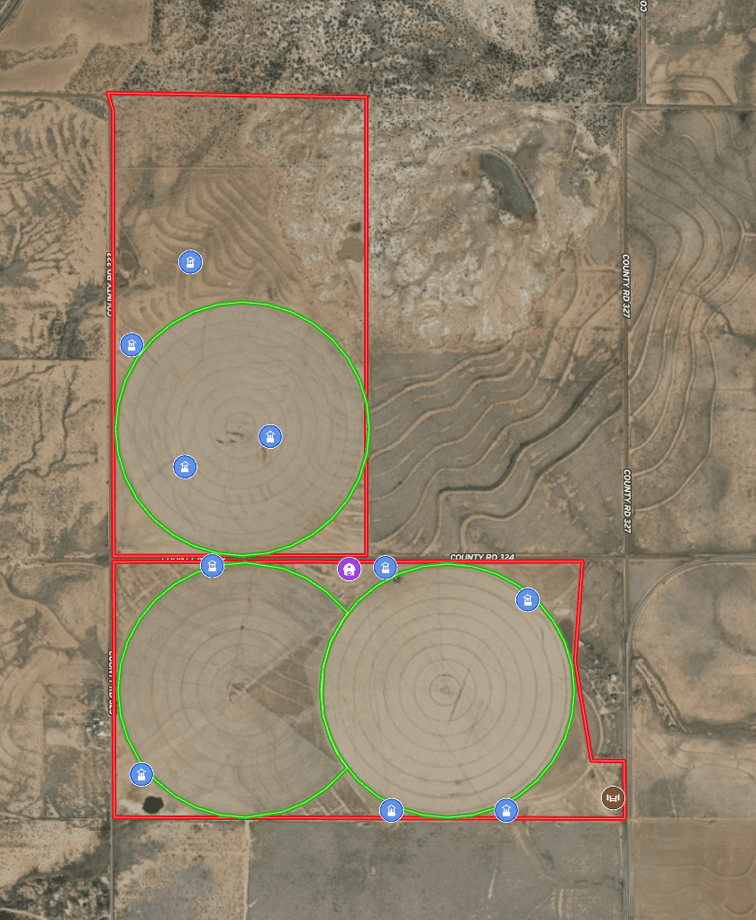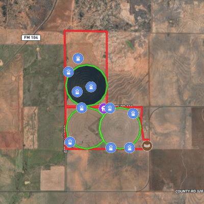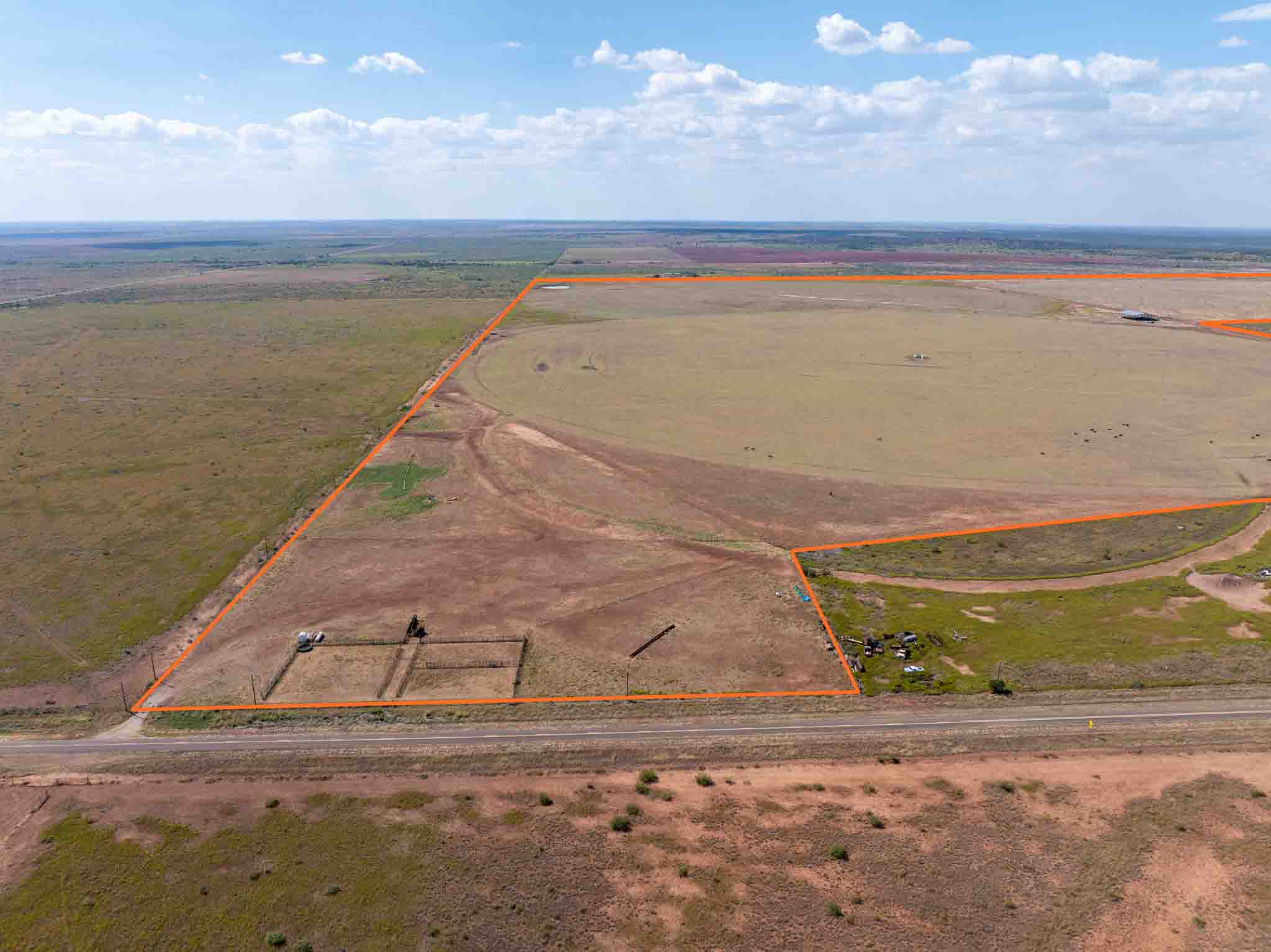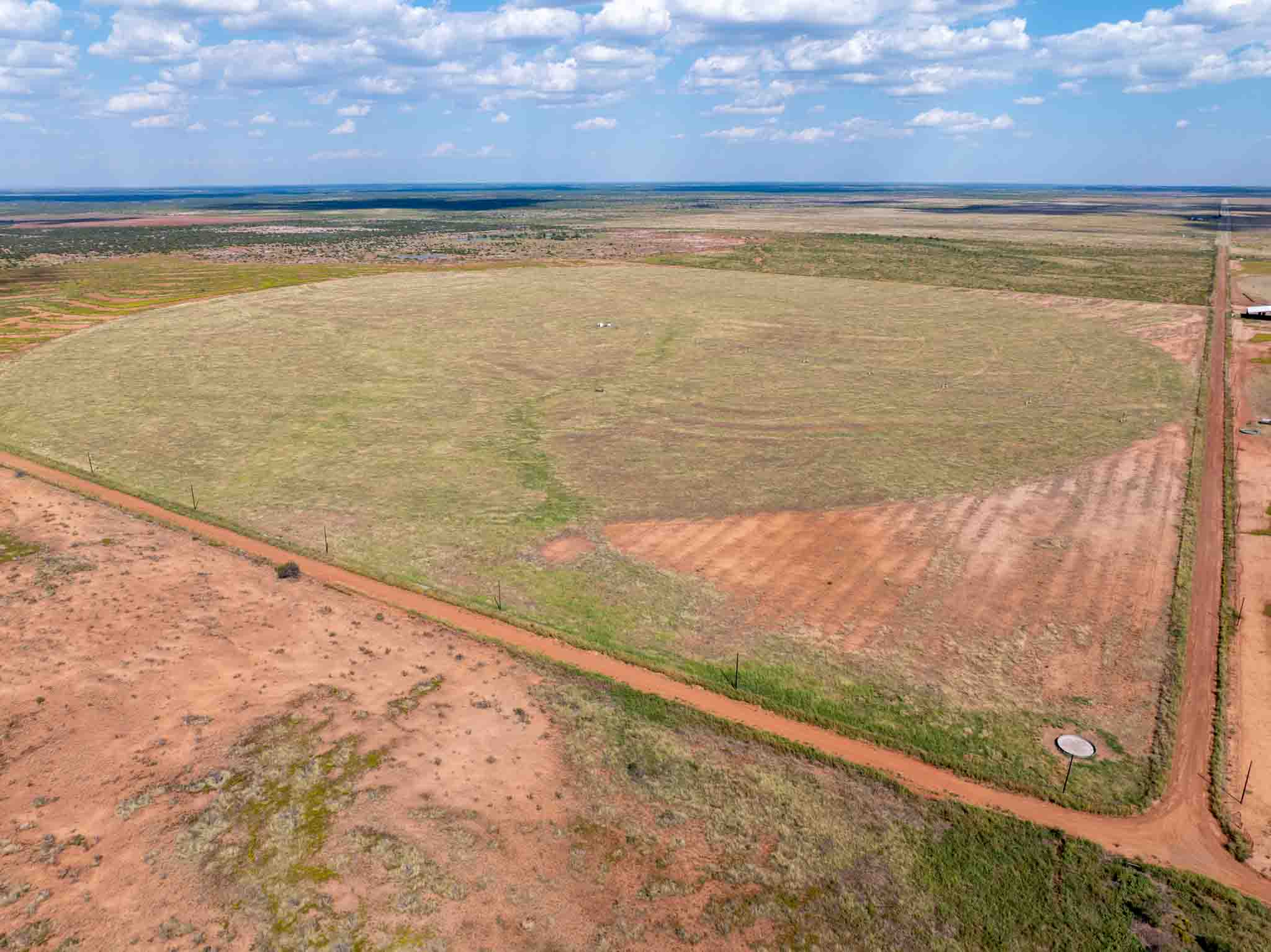 Located just 10 miles northeast of Paducah, Texas, this 540± acre irrigated grass farm combines strong water resources, quality improvements, and exceptional access. The property features three center pivots supported by six wells (1,650 GPM in total / 4.5 GPM per wet acre), delivering a reliable water supply for approximately 350 acres under irrigation. There are an additional 4 irrigation wells that are in working condition for expansion potential, making 10 wells in total. Currently planted in bermuda grass, the farm is well-suited for hay production, grazing, or diversified agricultural use. All the stock tanks are tied into a rural water line that runs across the property.